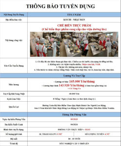 - Công việc cụ thể: Chế biến thực phẩm cung cấp cho viện dưỡng lão